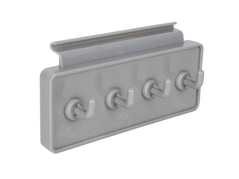 Een handige kapstok voor caravanrail met 4 haken. Gemaakt van sterk kunststof en zeer geschikt om jassen, vesten, tassen of andere spullen aan te hangen. De kapstok is makkelijk in de rails te schuiven aan de zijwand van de caravan.