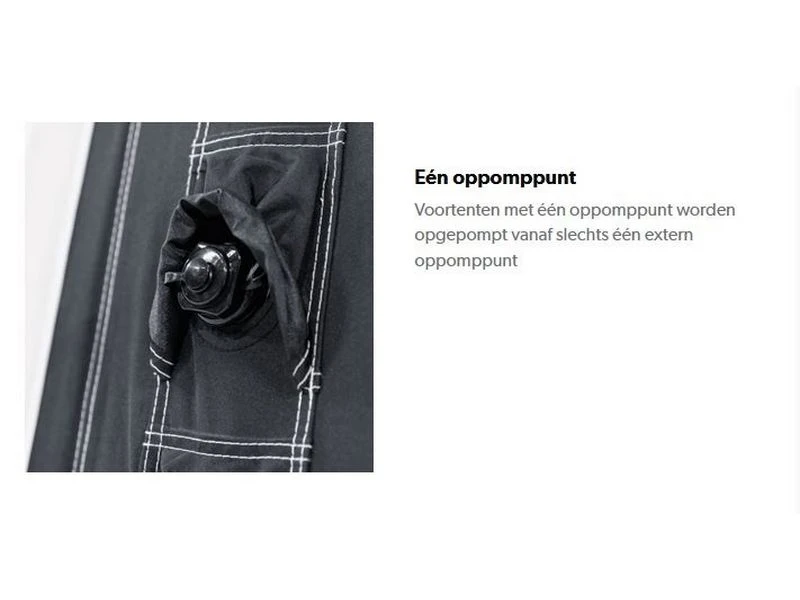 Opblaasbare drive-away voortent, aansluithoogte: 180-215 cm.