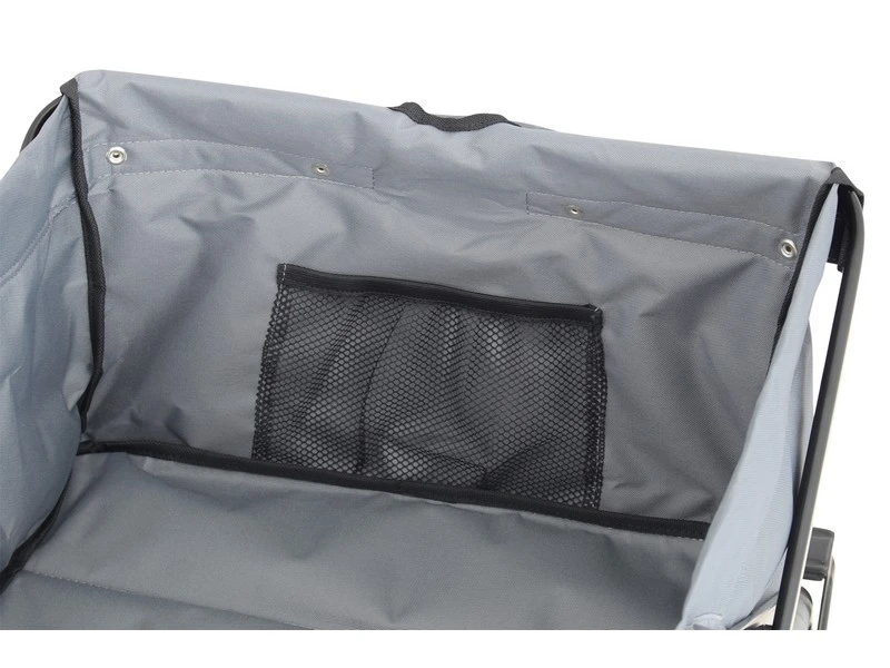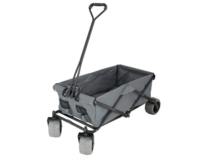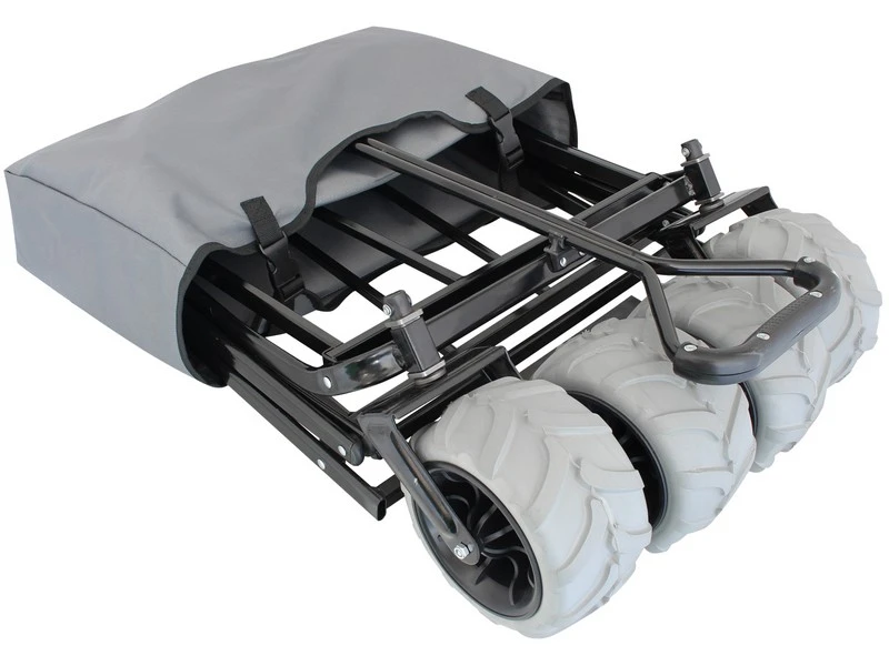 De wielen kunnen naar binnen geschoven worden waardoor je de kar eenvoudig in kunt vouwen tot een handig plat pakketje. De Sunny wordt geleverd incl. hoes. De ideale kar voor gebruik op het strand!