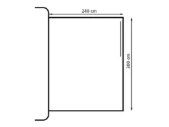 De voorwand wordt dmv een pees aan de voorzijde van de cassette luifel bevestigd en de zijwanden worden met behulp van een rafterstang (exclusief) opgehangen. Vervolgens worden de voorwand en de zijwanden met een rits aan elkaar bevestigd. Hierdoor ontstaat en een ruime beschutte tent, een ideale plek lekker om te zitten met voldoende plaats voor uw tafel en stoelen neer te zetten. (Let op de bovenkant van de zijwand is los van het luifeldoek.)