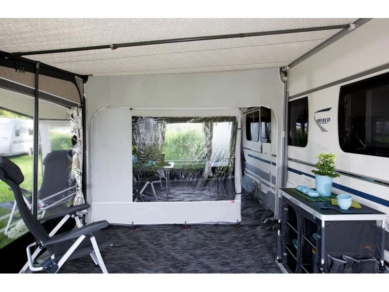Maakt het mogelijk uw voortent op te delen in 2 afzonderlijke ruimtes. De scheidingswand is gemaakt van gecoat polyester en met venster.