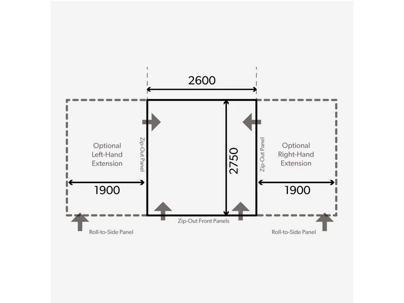 De Club AIR Pro 260 heeft het uiterlijk van een klassieke voortent, maar is een moderne opblaasbare voortent. Dankzij de aan één of beide zijden vast te ritsen aanbouwstukken creëer je een enorme leefruimte. De zij- en voorwanden zijn uitritsbaar, waardoor je je voortent in no-time omtovert in een luifel. De voortent is uit te breiden met verschillende accessoires.